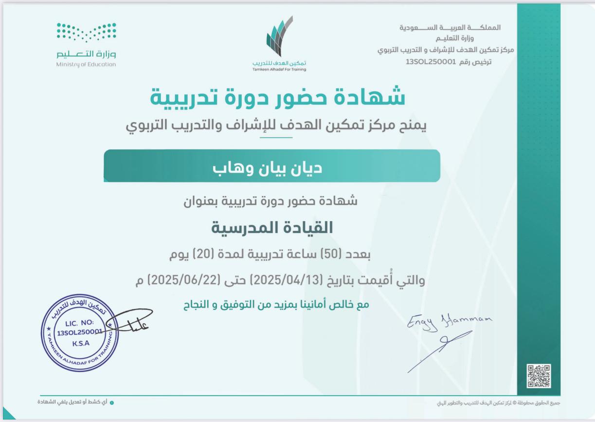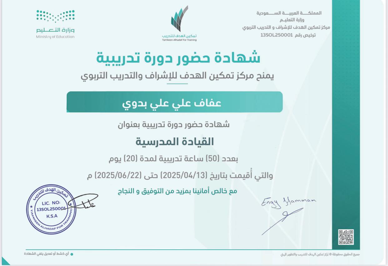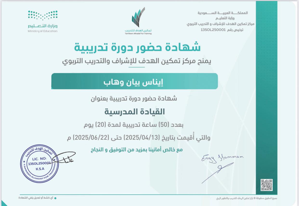 Our Graduates Empowerment Program certificates from the Ministry of Education in the Kingdom of Saudi Arabia_ School Leadership Course